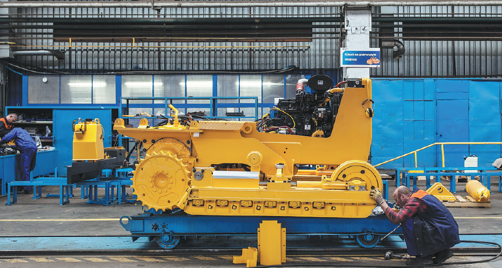 在波兰华沙的柳工锐斯塔,一名技术人员在一台柳工机器上工作。