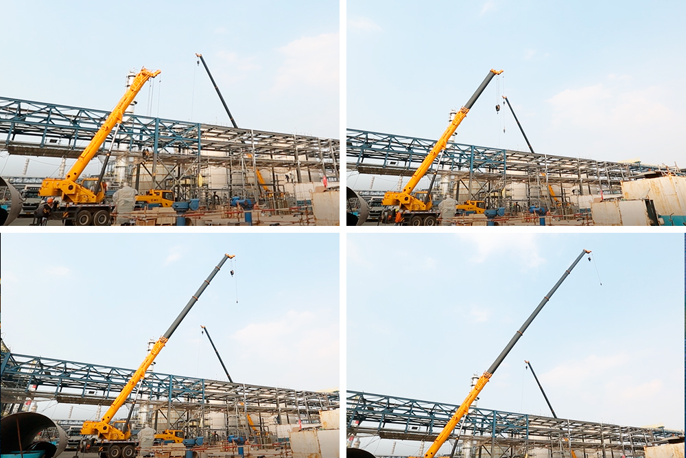 没想到的是,得益于这台柳工TC250C5的超高作业效率,不仅提前完成吊装作业,还给我们余留了充裕的时间,在与操作手师傅协调过后,我们对其进行了中长臂吊载能力测试。