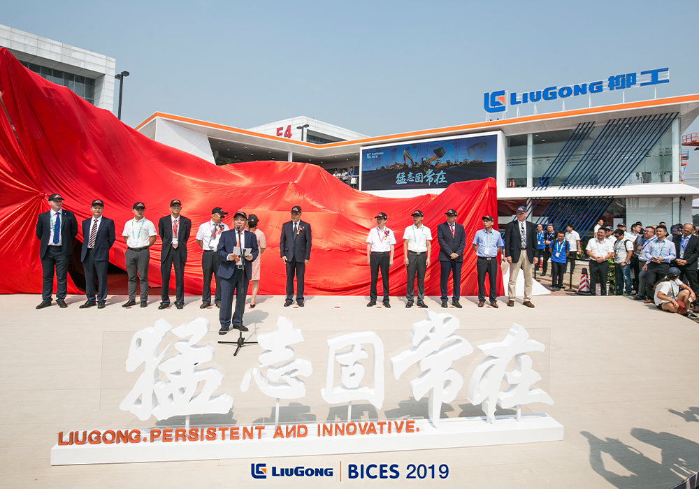 “猛志固常在”。BICES 2019开幕前一天,柳工在展馆外墙挂出了自己的新slogan明志。