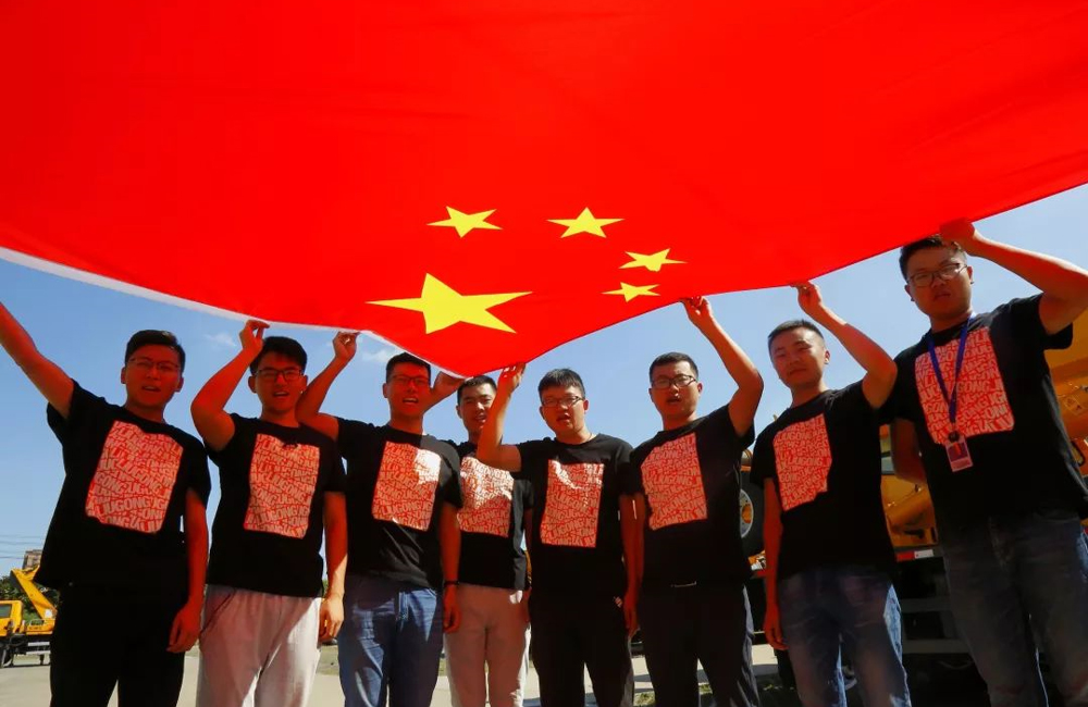 柳工青年在五星红旗下茁壮成长。我们自豪,因为我们是中国人,我们爱祖国,我们爱五星红旗,我们向国旗敬礼。祝愿祖国繁荣富强、明天更美好!