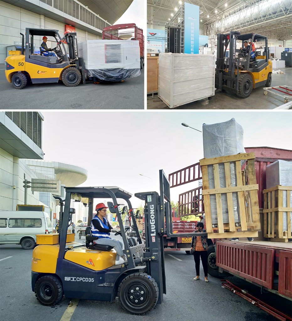 展会布展期间,穿梭全场搬运展品的一台台柳工叉车,成了一道道别样的风景,这些叉车是当地知名的某租赁公司的。