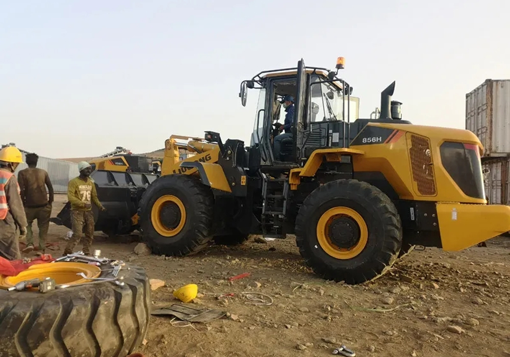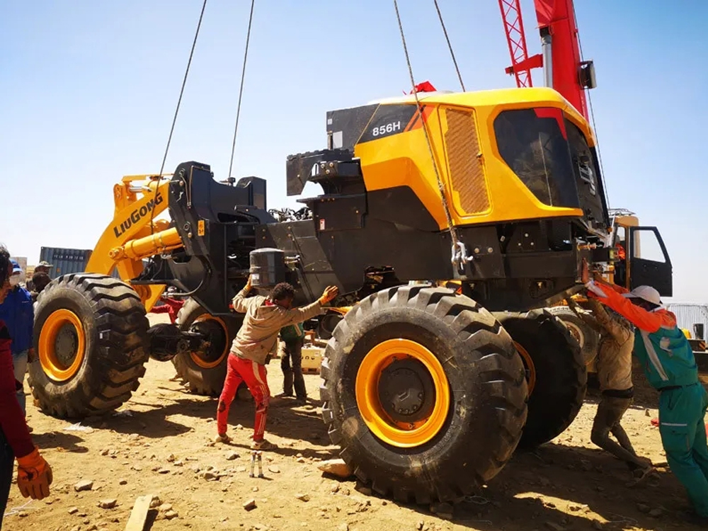 2020年3月26日,柳工7台856H装载机顺利抵达埃塞俄比亚迪巴克地区的客户项目部现场,第二天,客户就要求7台设备急需快速组装。