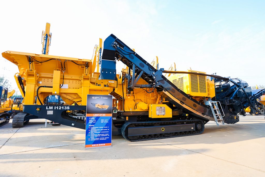 柳工向到场嘉宾们展示了多年钻研和实践的成套矿山施工解决方案,从事矿山破碎筛分、挖掘装载、采矿运输等环节的多款明星产品,并隆重发布了新品履带式电动反击式破碎站LM I1213ES、履带式电动筛分站LM S48E 和新品履带式反击式破碎站LM I1213S三款新产品。