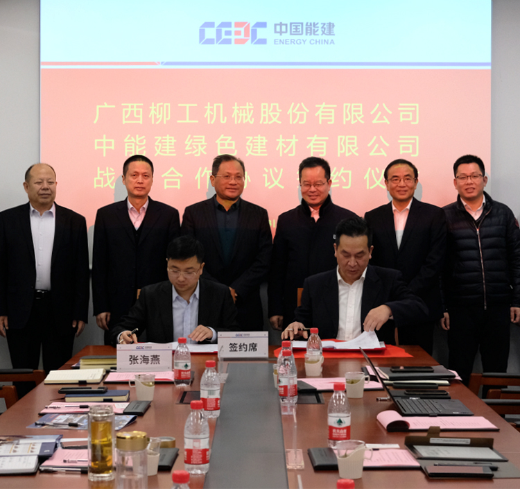 2月13日,乐竞在线注册(中国)网站首页执行董事、高级副总裁文武,乐竞在线注册(中国)网站首页国内营销中心总经理、装载机业务副总经理、装载机营销公司总经理宁健图与中国能建党委委员、总经理助理、中能建绿色建材有限公司董事长任生春,中能建绿色建材有限公司法定代表人、党委副书记彭元平等进行座谈交流,双方就进一步合作事宜展开交流,达成共识,并签订战略合作协议。