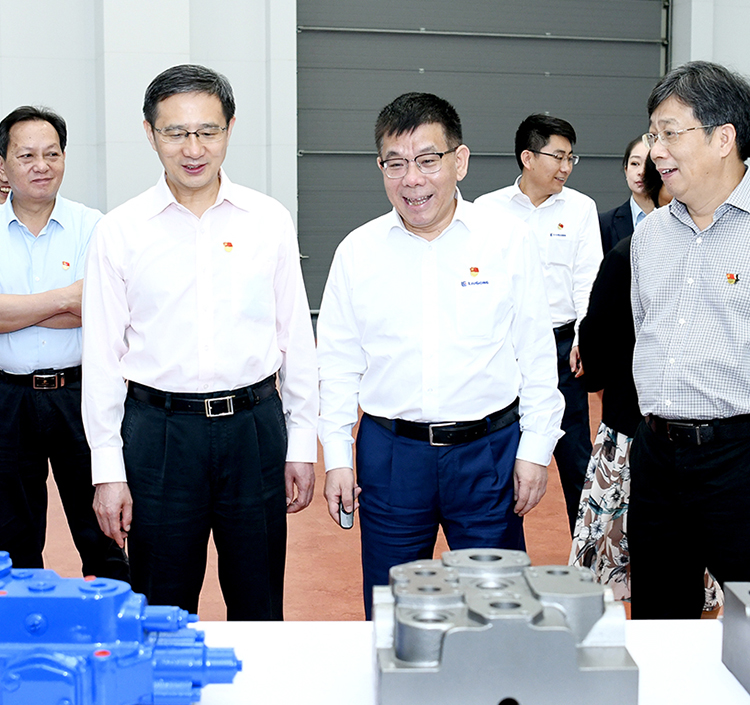 5月6日上午,“五一”假期后第一天,自治区国资委党委书记、主任李杰云率国资委领导班子和厅级干部,以及驻柳自治区直属企业党委书记来到柳工,沿着习近平总书记4月26日在柳工考察时的路线,实地领悟习近平总书记视察柳工时的重要讲话和指示精神,召开党史学习教育第二次专题学习,广西柳工集团机械有限公司,乐竞在线注册(中国)网站首页党委书记、董事长曾光安作全程讲解介绍。